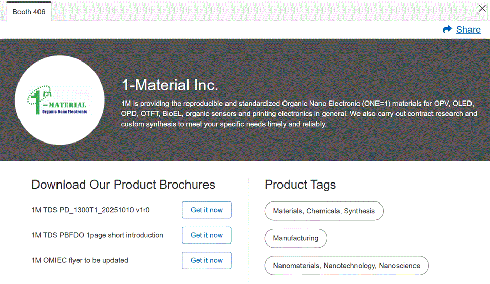 1M is constantly supporting Material Research Society(MRS) by providing reproducible and reliable Organic Nano Electronic (ONE=1) materials.